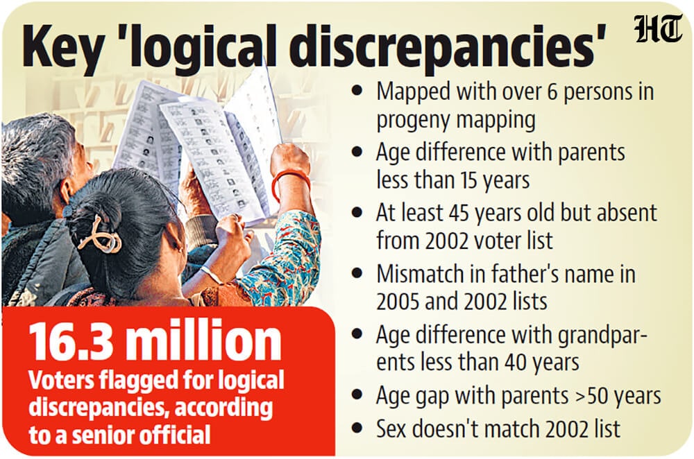 The data shared by EC revealed that a large proportion of voters with logical discrepancies in enumeration forms are from border districts such as South 24 Parganas, North 24 Parganas, Malda, Murshidabad and Nadia.