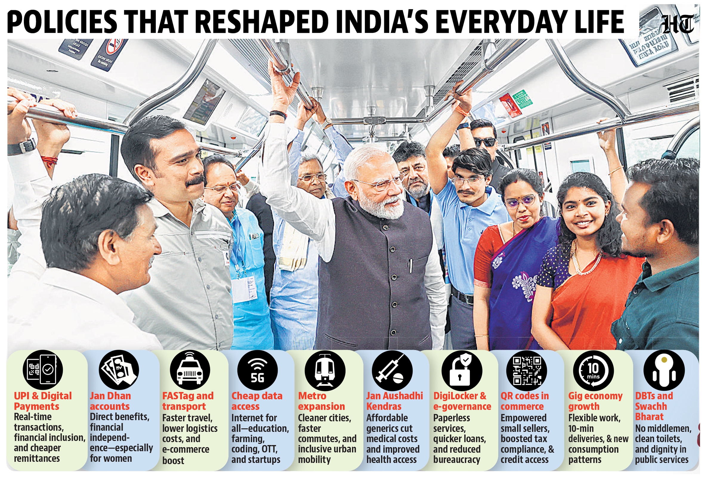 Modi’s stewardship saw India transition from being a part of the fragile five to the world’s fourth-largest economy (and soon to be the third). His focus on people-centric policies, introspection, and enhancing productivity, his colleagues said, were at the core of initiatives such as the expansion of the digital economy and financial inclusion, allowing small vendors financial empowerment through digital initiatives or collateral free loans for women and young entrepreneurs.