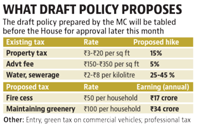 The draft policy also proposes hike in property tax, advertisement fee, sanitation fee and water supply and sewerage charges (see box).